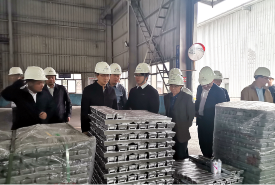 Under the leadership of President Peng Bingfeng, Deputy Director Liu Bing with his delegation visited the aluminum ingot workshop, copper bar workshop, drawing workshop, extrusion workshop, vertical spraying workshop, copper strip workshop, phosphorus copper ball workshop, fully understand the company each product from raw material recovery to the formation of the whole production process, Peng Bingfeng explained in turn.